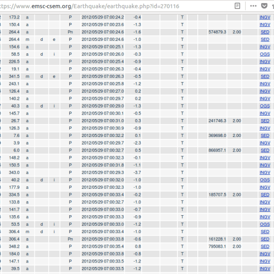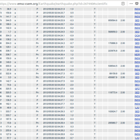 The CTBTO neglects signals that look clearly like nuclear explosions because they are “too deep” but they actually are nuclear tests. Some countries seem to use their volcanic areas because “tornillo” events look like underground nuclear detonations, yet this area in Italy is very far from a volcanic area, it’s an alluvion zone. A quake of 6 on the Richter scale should kill much more than 6 persons. But without S waves it is not deadly. One can look on the EMSC-CSEM website to see this. For instance :