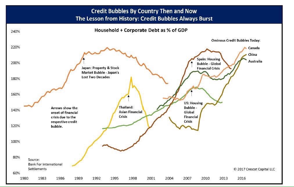 The bubble of the decade is about to burst. The “everything bubble” is in fact propped up by military spending (which benefitted hugely from easy credit and thus public debt) as well as housing and Chinese debt as well is involved.