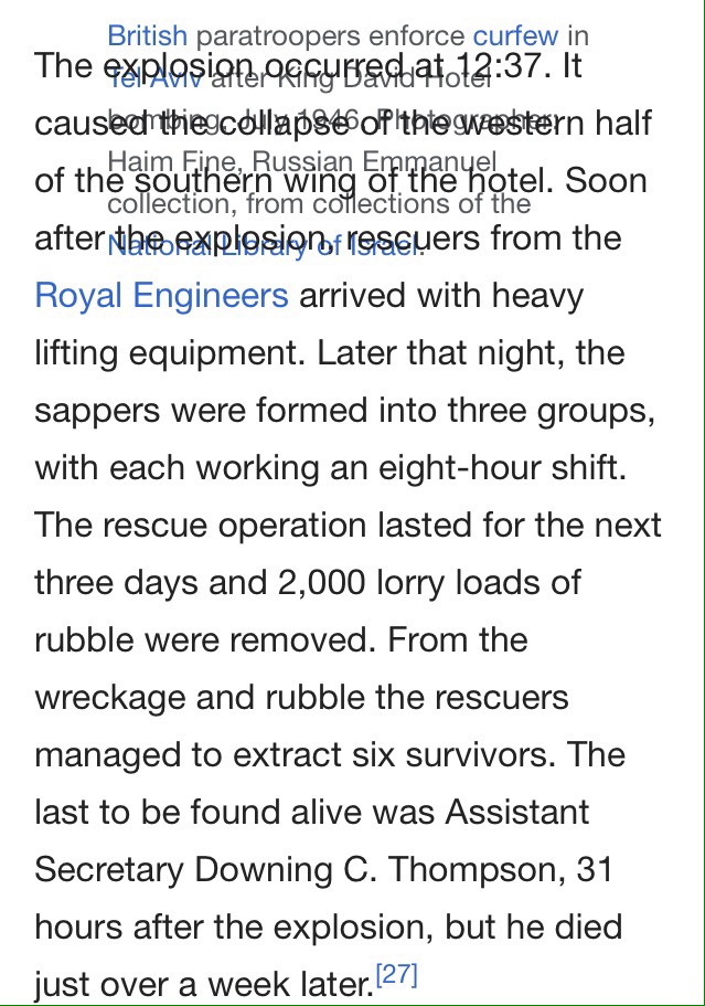 In these times the British were overtly pro-Palestinian… So this conclusion is obvious : everybody blames Irgun yet they did NOT revindicate. Why would a persecuted people commit an “act of terror” against the very powerful British that had them in their power ? The British Army HQ had a small reactor in its HQ for obvious military purposes (making neutron sources & small Pu bombs close to a strategical area and likely giving also some to Palestinian militants secretly).