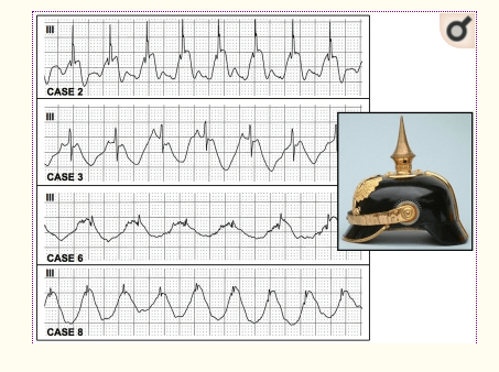 The publication on ECG studies by Littmann & Monroe (Mayo Clinic Proc. 2011) adopting spiked helmet as the rule for ECGs of individuals approaching extreme death risk is in my view wrong. For reference, here is the data presented by the authors :