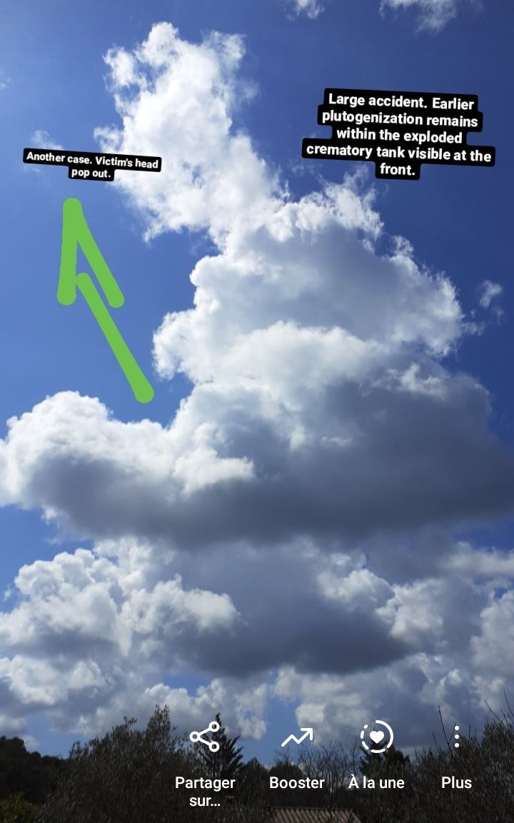 Here is a complement to the above article. The collective explosion of Ukrainian crematory tanks created radioactive plumes that drifted across Europe with the Earth’s spin and I could picture shapes testifying of it. (Remember that Chernobyl reached south-eastern France in 1986)