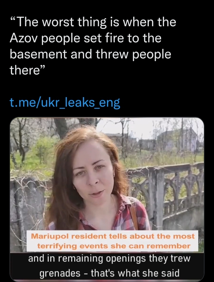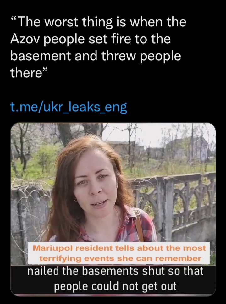 It is confirmed that the Azov Battalions in Azovstal used the civilians sheltered within as raw matter for plutonium. One room at least with civilians in, locked totally except for small vents through which grenades were sent. The grenades with depleted uranium are a particular but patented war material which was obviously used.