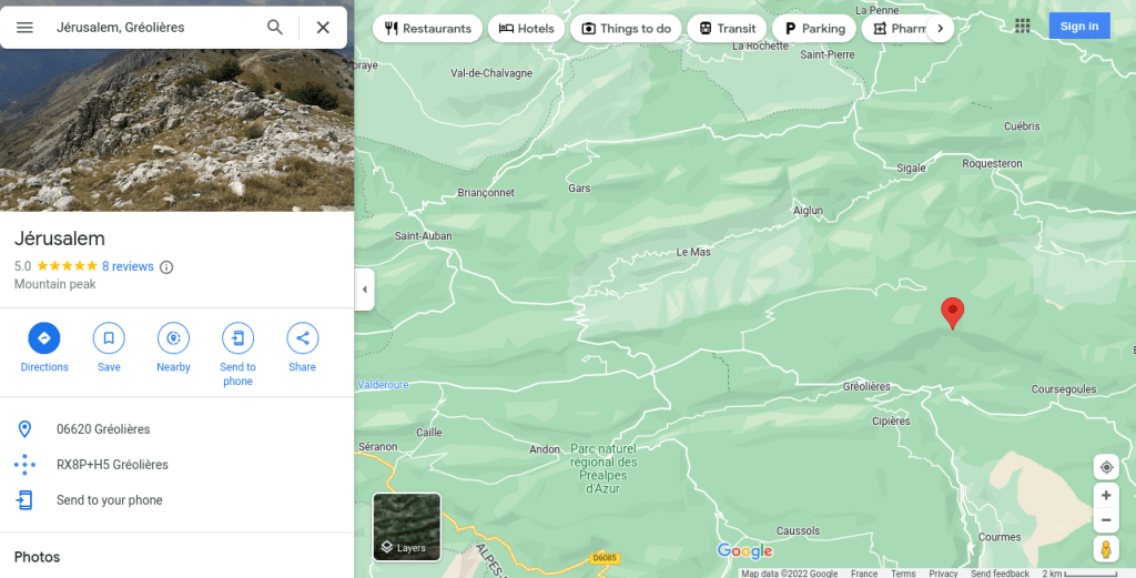 L’effet de quantum tunnelling est confirmé par un autre moyen, la tradition a en effet attribué à une montagne de Gréolières, non loin de St Auban, le nom de sommet de Jérusalem.