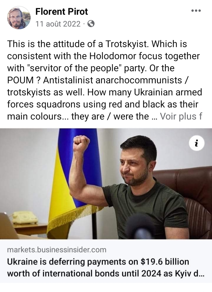 El hitlerotroskyismo se debe ser entendido como también la ideologia quintesencial de Volodymir Zelenskyi et de Dmitro Kuleba en Ukraina. El modelo comun dado por el mito revolucionario en China, por el antijudaismo de Marx, y por el POUM, en particular, es la planta de produccion de este régimen politico. Les convictions POUMistes de Volodymir Zelenksyi et de Dmitro Kuleba en Ukraine ne font aucun doute. L’hitléro-trotskyisme, autour de l’antijudaïsme de Marx, du mythe révolutionnaire prolétarien du PCC, et de la nostalgie du POUM, s’organisent autour de la figure de Volodymir Zelenskyi et de son régime. Notez qu’en Espagne la reconquête a commencé “de l’étranger” (du Maroc) et il en va de même pour l’Ukraine aujourd’hui grâce à la Russie. Je pense aussi que Josep Borrell se réfugie régulièrement dans son mythe d’indépendantisme anarchocommuniste de la Catalogne entre 1936 et 1937 et répand exactement, exactement les mêmes méthodes en Ukraine (avec en mythe d’unification catho-communiste le “santon chieur”, le santon cagadou – caga-DU – “l’élimination dans les toilettes” symbolisant la disparition forcée en four crématoire – le “gazage”). Les fours en briques correspondent à des méthodes vues aussi à Kyiev il y a quelques mois (grâce à une frappe au Shahed-136, le comportement d’ouvriers habillés en vert rassemblant en urgence des briques réfractaires en partie dispersées par l’impact du drone dans un camion près d’un jardin pour enfants fut observé quasiment en direct).