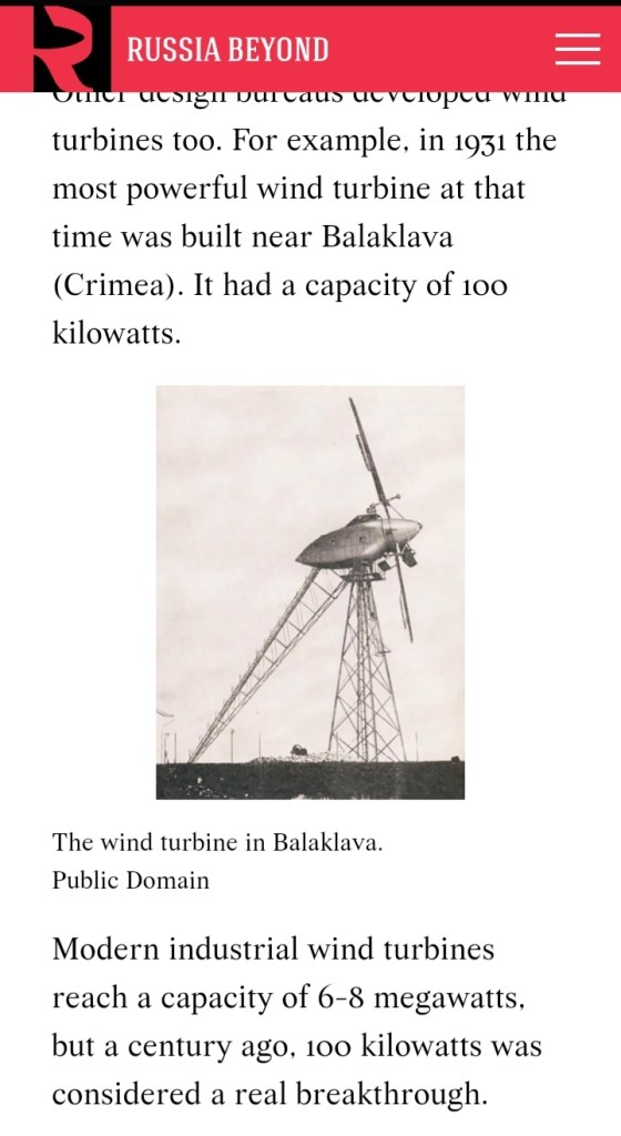The Balaclava wind turbine (balaclava also means hood…) also built in 1931 is the first main element supportive of the argument of this article. It was tremendously huge, a record for these times.