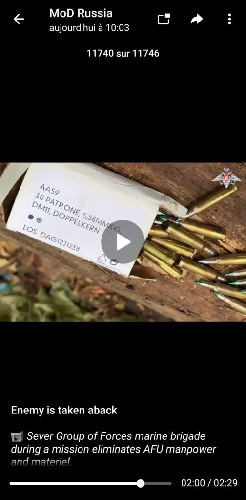 Patrone ammo was found in Ukraine by Russian soldiers, it’s small caliber DU ammo made in Germany. This leads the North Koreans to think France is still under German occupation.