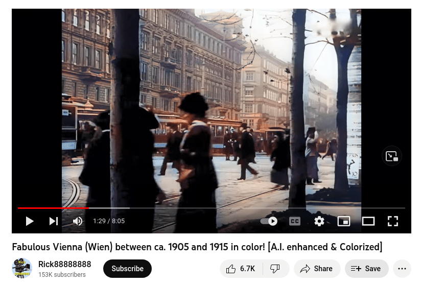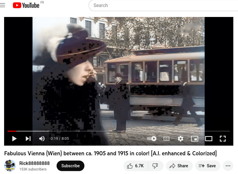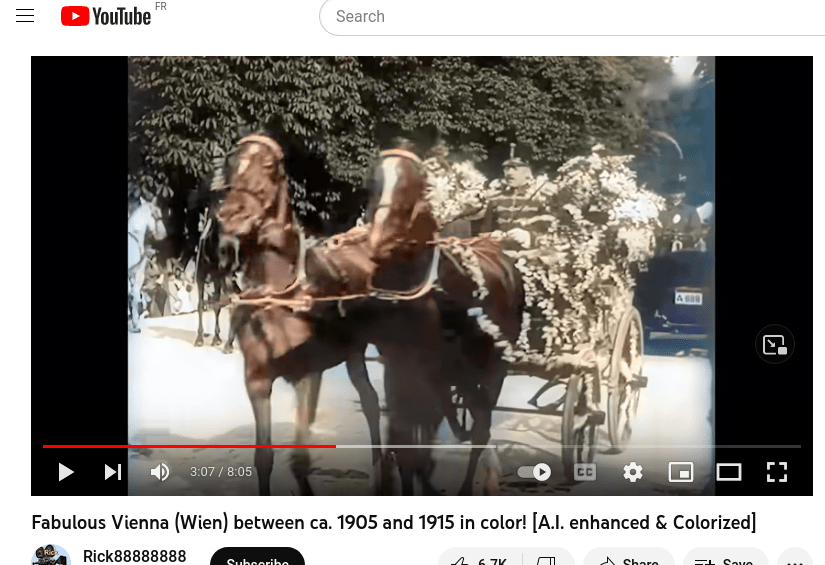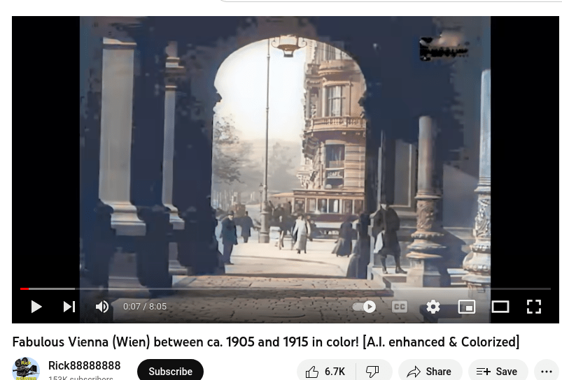 It’s clear that radon gas became used immediately by bankers to kill debtors that would not pay back. Altogether certainly with uranium, for less glowy – radiating cases. The resulting radioactive human ash used for tramway power in particular. This is obvious based on the wide pictographic disruptions on colour videos of the Vienna of these days, when tramways in particular are nearby – and it was also used in hybrid propulsion by horse carriages, with the horse pressurizing the human ashes to accelerate the system. I don’t think at all that fission was understood, it was simply “radioactivity power” – crematory. Let’s start with a good quality image from the sample to better see afterward the photon absorption related to nano-black hole effect (nuclear compression due to the human ashes, whose size is increased by the nuclear heat and radiation, creating due to the cycle a nano-black hole inside, that captures photons around).
