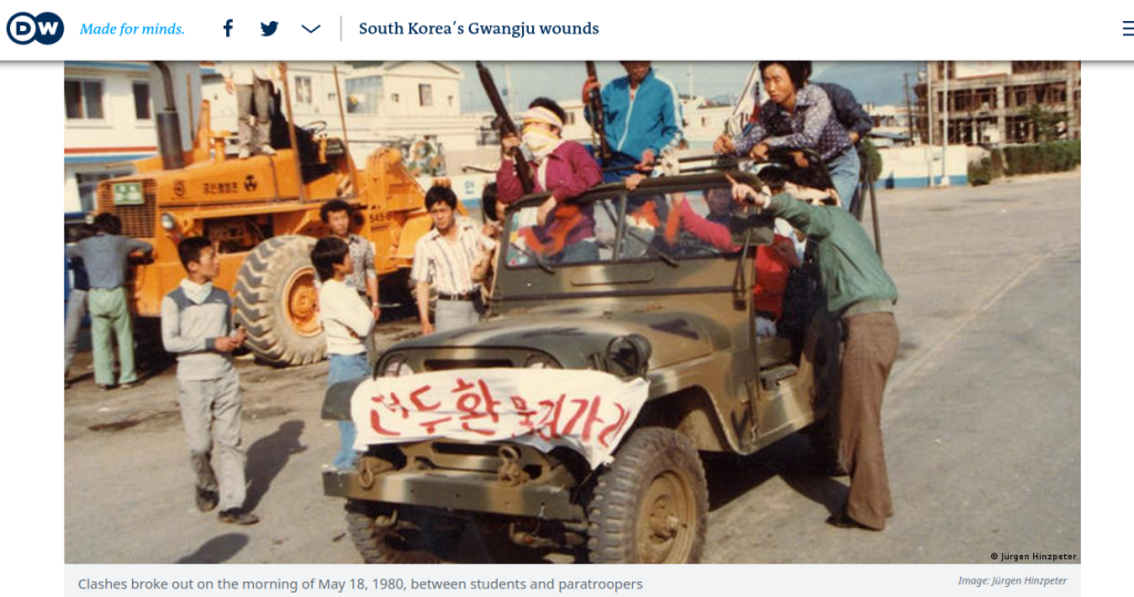 Jimmy Carter chose Aryanism and North Korea, by attempting to conclude negociations with them in 1994, while North Korea, in my opinion, had advanced with crematory power into South Korea to push for the demonstrators (I think the jeep in the picture above comes from North Korea ; although I think that Socialist Vietnam was the first to push for these demonstrations, and that the assassinated president Park Chung-Hee was killed by the KCIA because of his acquaintances with Vietnam – Park certainly suffered from his birthdate, on November 14th 1917, but also certainly expressed opposition to the crematory policies at the dinner in which he was killed – this has to be seen in the continuation of China’s invasion of Vietnam in February 1979). Perhaps was Jimmy Carter attempting to compensate for his earlier mistake of supporting the repression of the student uprising. He clearly triggered the development of a ring of North Korean spies that resulted later into the Orange Revolution in Ukraine. Not to mention strikes against Serbia later instead, with DU, targeting among other things the Serbian nuclear programme with the sure involvement of the Chinese embassy…