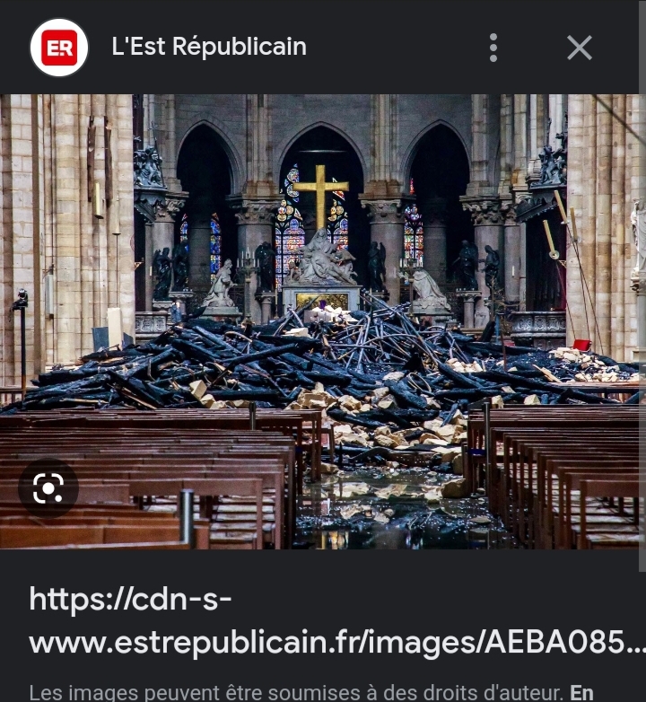 L’observation de l’intérieur de la cathédrale après l’explosion montre très bien l’effet de l’explosion d’un système crématoire qui lors de son explosion génère des antigravitons crématoires supplémentaires (lors de la surchauffe juste avant l’explosion) d’où l’effet d’aspiration sur l’intérieur, la surchauffe causée au départ par l’aspiration par le haut du fait de l’éruption de trou noir (remontée du plutonium crématoire qui tombe usuellement dans le fond de l’appareil) se comportant donc ensuite comme une sorte de coeur de part le raccrochage des antigravitons de l’extérieur du système crématoire (surgénérés) aux antigravitons cosmiques en provenance du trou noir en éruption. Cela explique cette structure entassée des débris.