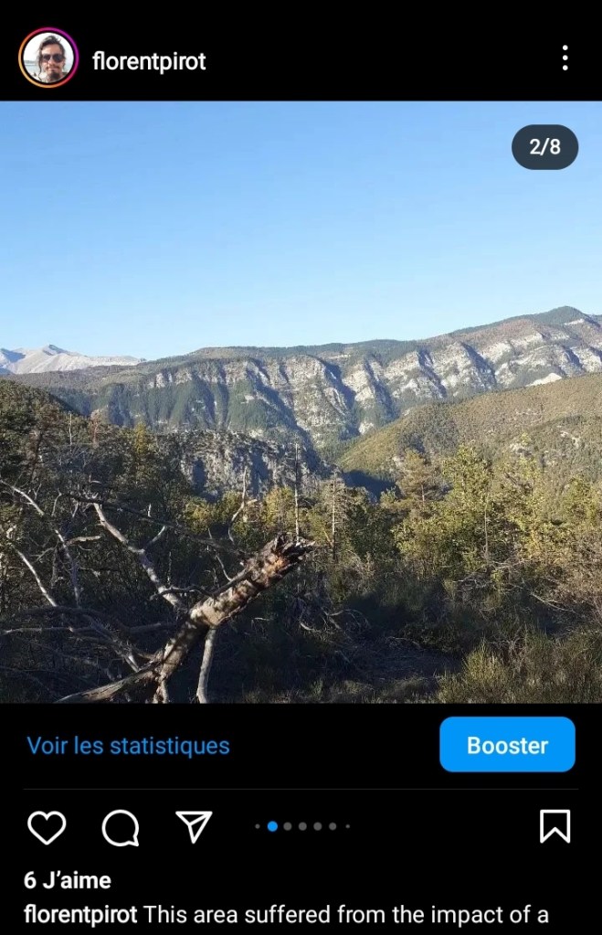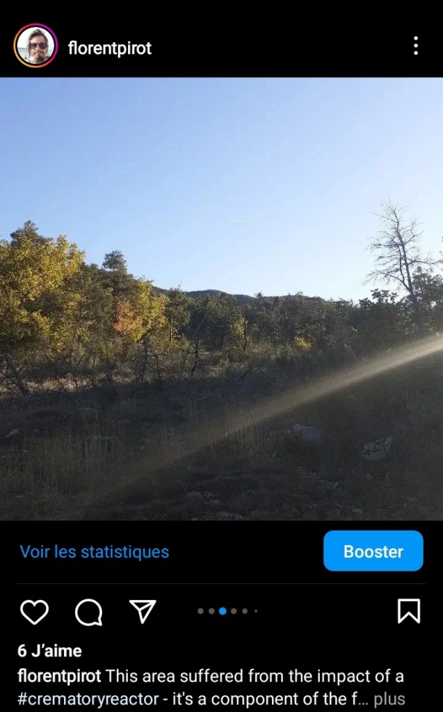 Le feu se compare aussi assez bien avec la zone brûlée complètement par la retombée du réacteur crématoire de l’aile droite du Germanwings au nord d’Entrevaux où les arbres ont gardé des traces glaçantes des effets d’une contamination crématoire.