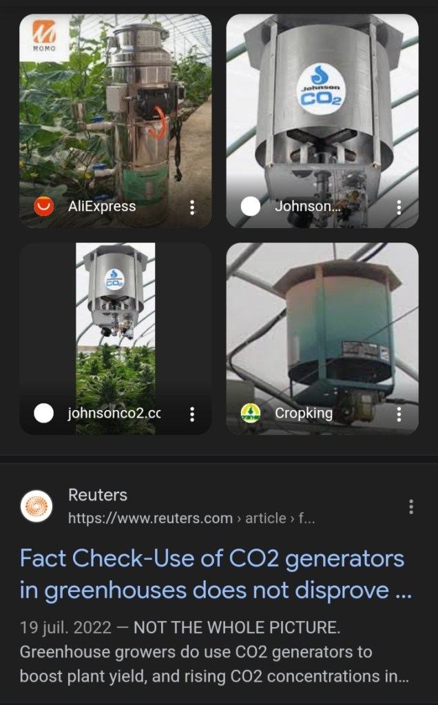 CO2 generators are also used in greenhouse agriculture to boost yields. Even Reuters acknowledges it while trying to maintain that in the MSM theory of the climate warming from greenhouse gases :