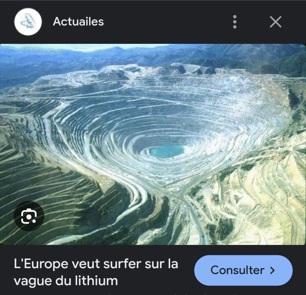 Il existe dans le Pays bigouden dans un secteur protégé par le Conservatoire du littoral un projet de mine de lithium. Ce projet doit voir le jour, d’une façon surréaliste, dans le secteur anciennement occupé par l’organisation Todt de l’Allemagne nazie qui y concassait des cailloux pour fabriquer ses murs et bunkers en se servant de prisonniers de guerre au travail forcé.