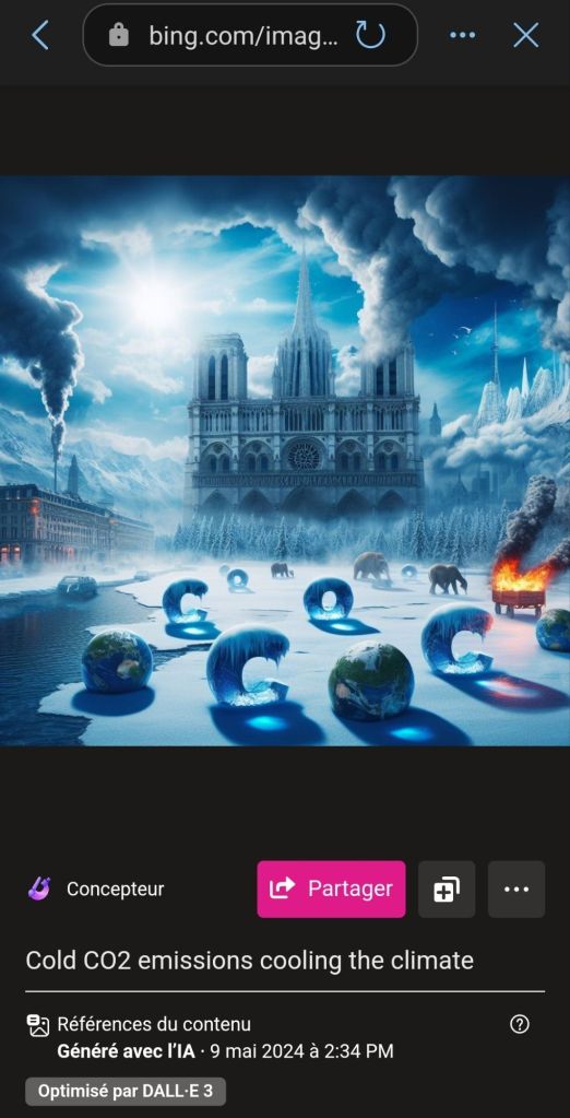 AI by the way understands perfectly what’s at stake. I did the experiment by asking Copilot to draw it after reminding it of the definition of cold CO2 and that photosynthesis is endothermic. I got this illustration in return :