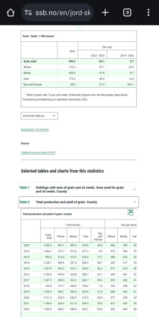 I did an experiment by talking to ChatGPT of Norwegian crop yields. After Norway got massively into electric cars in 2023, their grain yields collapsed, were kind of halved. This is from the official state statistical service of Norway :