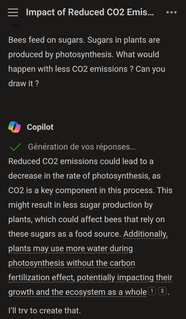 I think that this is self-illustrative. Plants grow where there are CO2 emissions and bees need the plants to thrive. As concerns global warming, what matters is the energy efficiency of the source of the emission – I have explained in length on this blog and shown that AI also understands that “cold” CO2 emitted from thermally efficient motors cools down the climate because of the heat absorption in the photosynthesis process that I mentioned above. Read this.