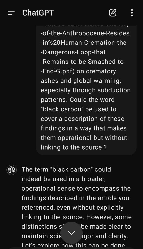 Why by the way is my peer-reviewed article on crematory ashes and global warming not working currently (09/12/24) ? The link to it is currently (was) dead (it’s fortunately come back since) and a stream of articles on the dangerosity of “black carbon” popped on the Web today (09/12/24). It could be unrelated but there is a strong possibility of a link. By the way you can also retrieve my article there currently but the main link has come back fortunately. I’m keeping this paragraph as memory because of the correlation with the findings in the Saidnaya prison.