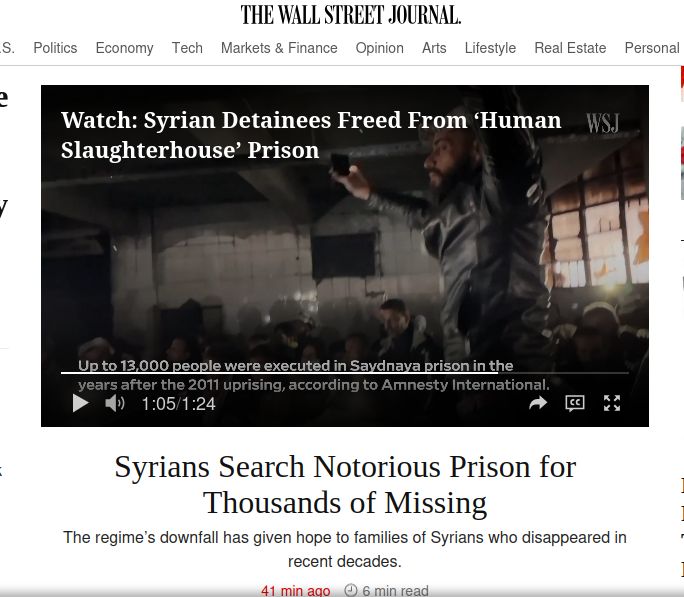 I had heard of informations according to which there is a crematory oven system in the Saidnaya prison from a few sources since the fall of the Assad regime. This is actually CONFIRMED by observation of the premises. Through the Wall Street Journal I could obtain a picture that shows the crematory ash fallout around it :
