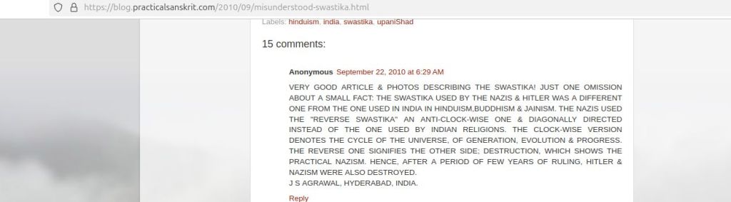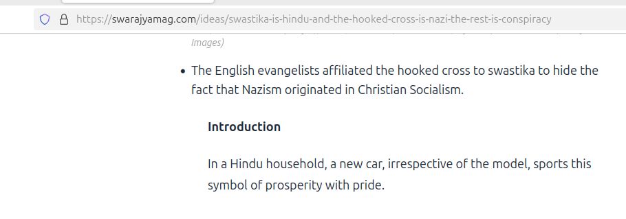 Truth has been forgotten except by a few. So it needs to be restated : the “Nazi swastika” is not the swastika but the reverse swastika, the hooked cross.
