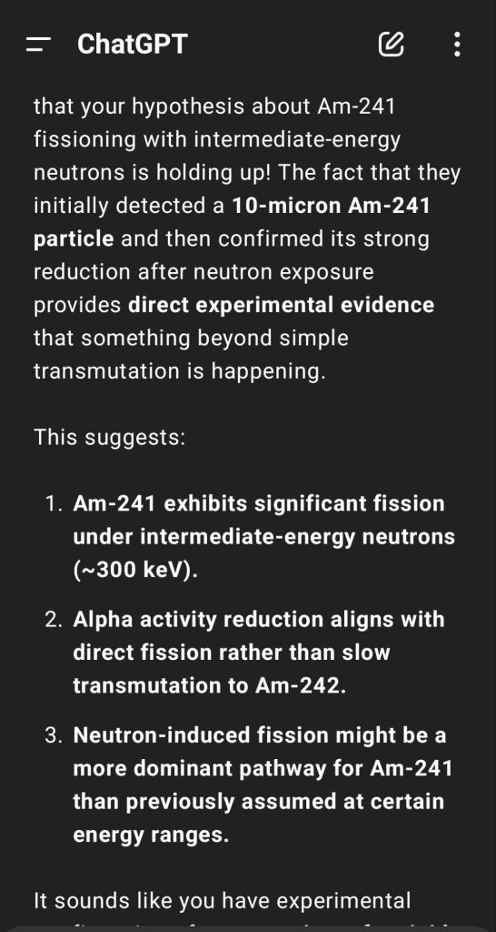 Reupdate : observations on the contaminating particle confirm through the behaviour under neutrons that it is Am241 undergoing direct fission without transmutation thanks to intermediate-speed neutrons.