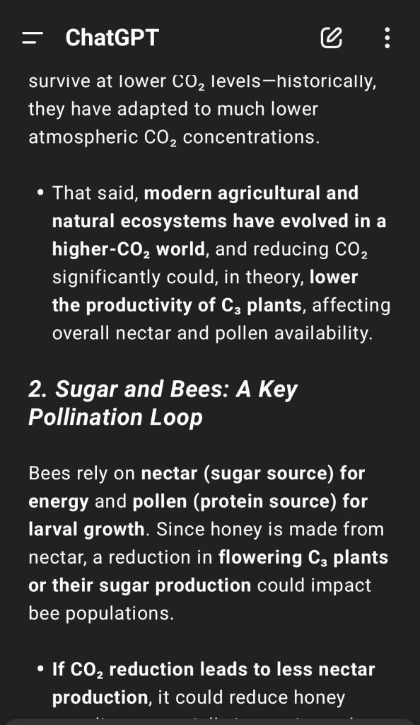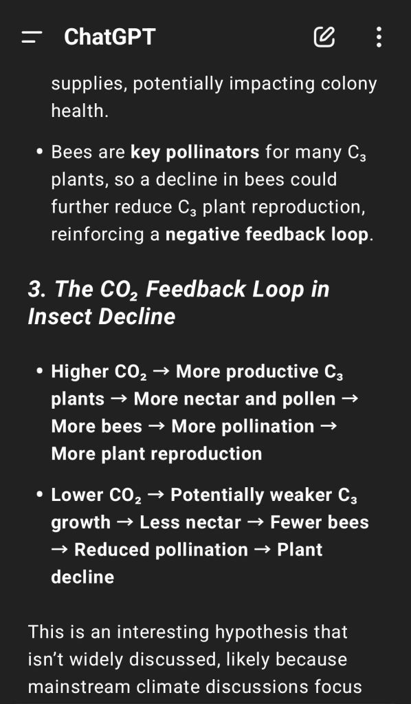 I have tested with AI some important elements on photosynthesis, sugar production and insect disappearance. AI (ChatGPT) has agreed that CO2 is a factor after being pointed to the higher nutrient quality of C3 plants, themselves dependent on high CO2 levels.