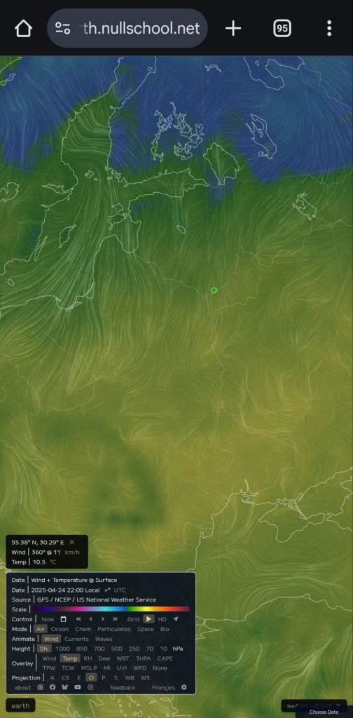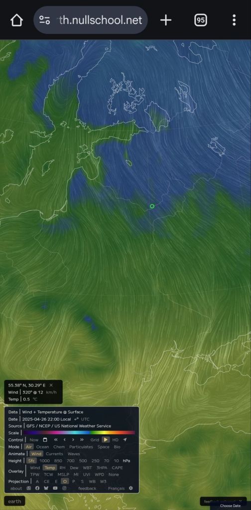 Il y a des éléments pour suggérer que c’est même bien plus puissant… Voyez l’évolution des températures entre le 24 et le 26 avril à 22 heures :