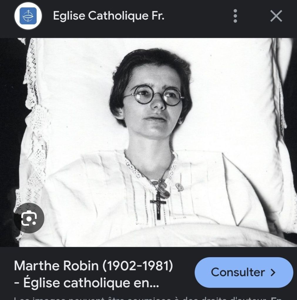 Marthe Robin suffered from several illnesses. She suffered from an acute form of dementia that started with eye trouble (ITON), headaches, vomiting, evolving into encephalitis and partial paralysis of the body. The chlorine channels in the brain and crematory ash contamination explain actually the pattern. Satellite observations have confirmed the presence of crematory ash fallout next to a farmed area next to her village of Chateauneuf de Galaure with crematory ash contamination on the soil.