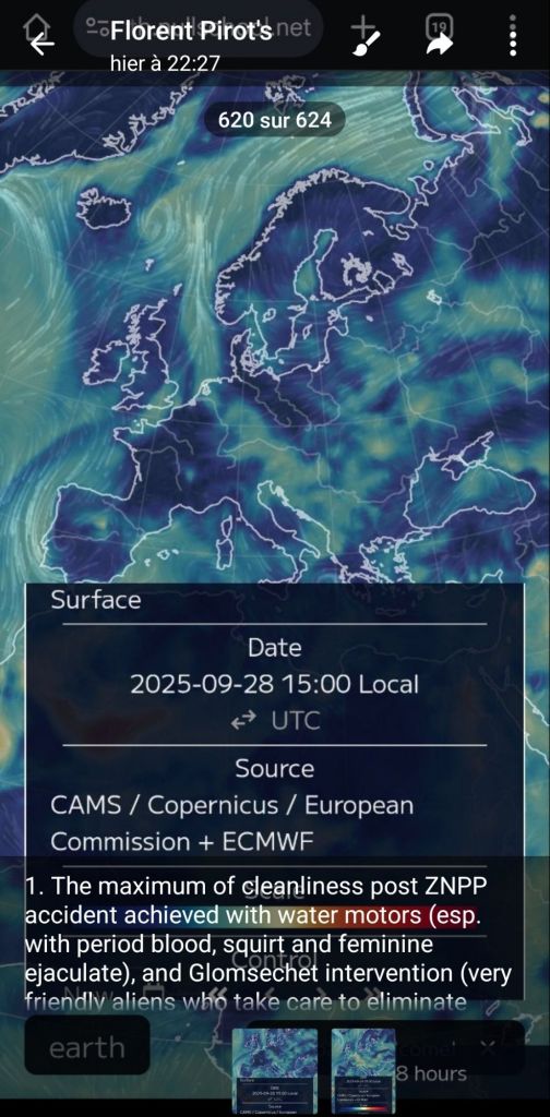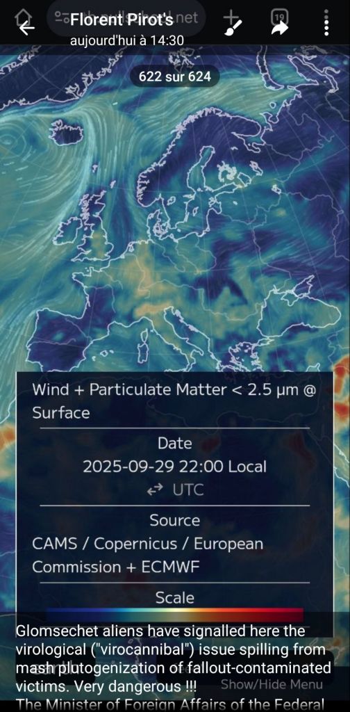 The plume of Zaporizzhie NPP is spreading in the way it was expected based on the neutron treatment (the incurvation at the West showing my neutron treatment for instance). The Minister of Foreign Affairs of the Federal Republic of Germany Johann Wadephul also indicates having felt his crematory and mash radioactivity sensors tingling. Indeed these are not standard rays, they are diffracted by crematory / mash material, so wide spectrum scintillometers, not geigers, are needed. The Elysée also complains of radioactivity sensed in the top of the Eiffel Tower right now. The State of Israel’s Embassy in Ukraine felt a huge radioactivity wave yesterday evening and earlier this morning and has sensed the neutrons of the collective work of the President of Ukraine Volodymyr Zelenskyy, of Boriska Kiprianovich, of the President of the Russian Federation Vladimir Vladimirovitch Putin, and of myself.