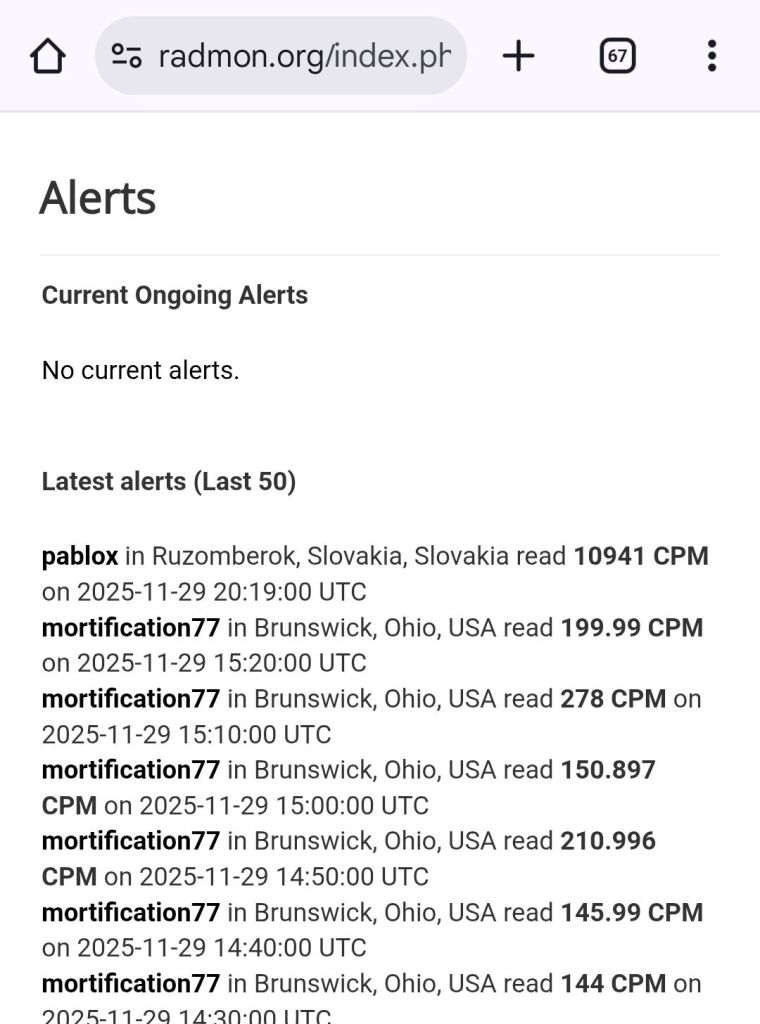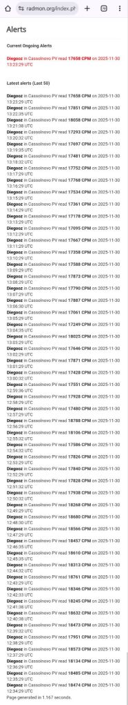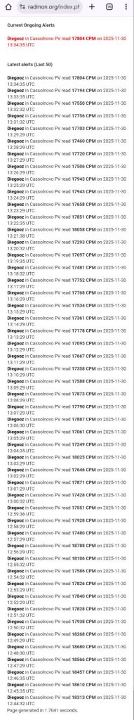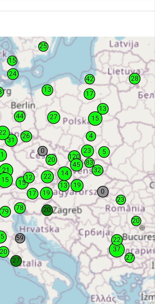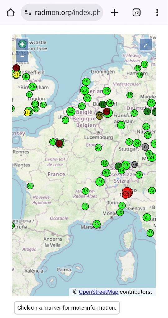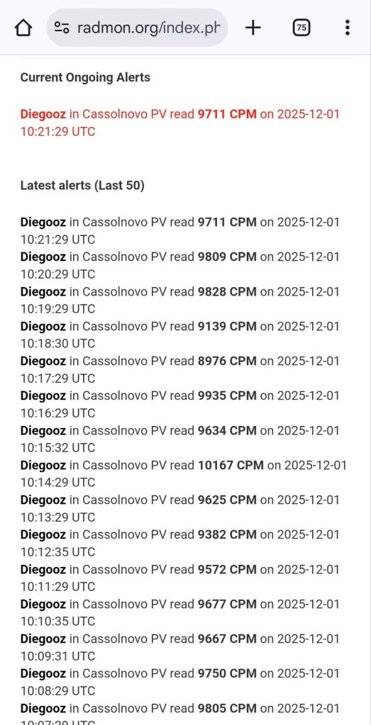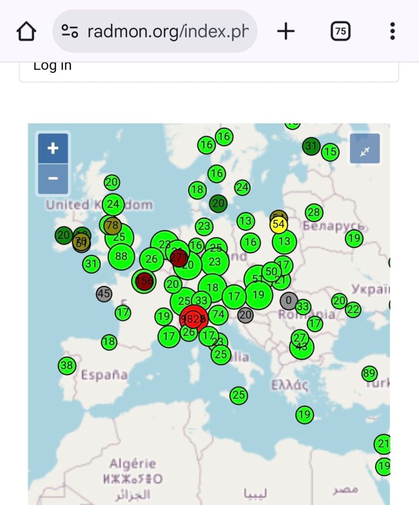 🚨🚨🚨 The tremendous, flabbergasting increase in ☢️☢️☢️ radioactivity around Milano is still staggering. It is estimated now to be ten times worse than Chernobyl for the area, and will certainly last longer for the radioactive dust is stuck east of the Alps. It is again recommended to stay inside at all costs. For other Geigers, the true size of the circle represents the real extent of the pollution (there are missing numbers on both sides sometimes, for instance the 27 in the Helvetic Confederation).