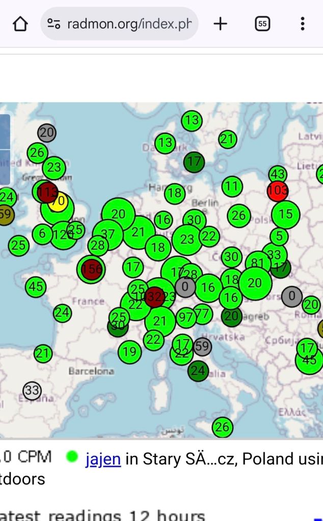 🚨🚨🚨 This shows again (1) the whole spread of the ☢️ radioactive cloud from the Auschwitz-Birkenau zyklon-C reactor explosion manifested by its official 354 uSv/h to 373 uSv/h near-starting point peak and its huge agglomerate around Milano showing about 18 milliSv/h. All CPM data on RadMon suffers from the same corruption as explained above. It is divided by 10 except for the Paris 156 CPM which is normal and the Aldermaston / Portsmouth data multiplicated by 10 through pressure of the European Commission to blame a nuclear accident there.