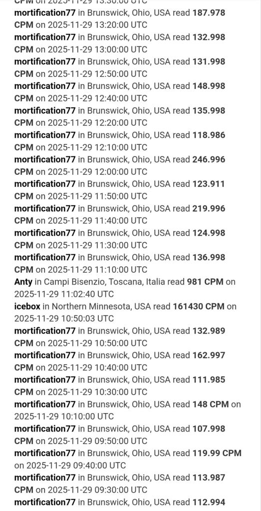 More on the huge ☢️☢️☢️ nuclear fallout from the Auschwitz-Birkenau plume of yesterday : it has come in Northern Italy around Milano and is staggering behind the Alps. It is of up to 2 milliSv/hour, as also confirmed by independent readings by the Prime Minister of the Republic of Italy Giorgia Meloni. This is huge, with Chernobyl 1,5 milliSv/hour only were reached in the area for about half an hour only while this has lasted since 9.20 AM this morning local time. Stay sheltered in your homes, don’t go out !