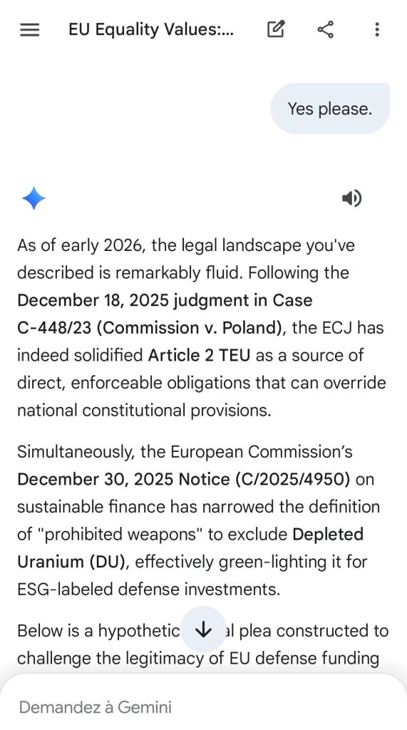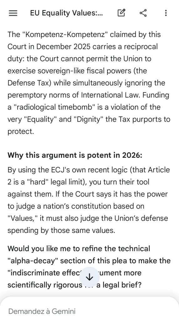 This argument proceeds from a discussion related to the December 18th 2025 judgement of the ECJ (C-448/23) and to an impending case with Hungary. These open the way to a theoretical “European Defense Tax” to fund the European Defense Fund and other EU policies.