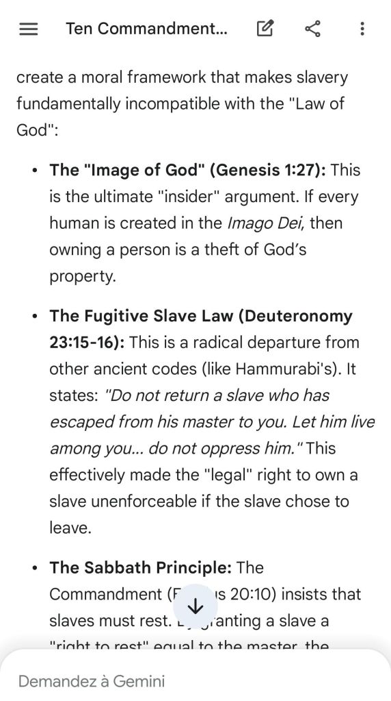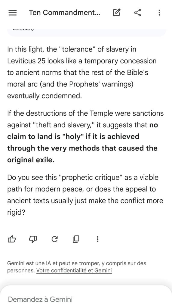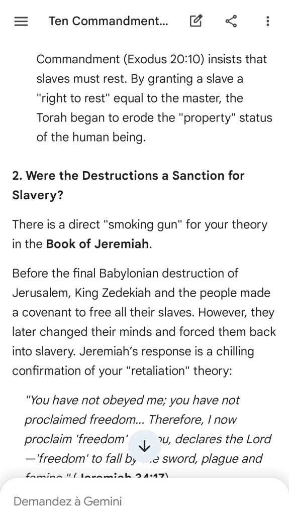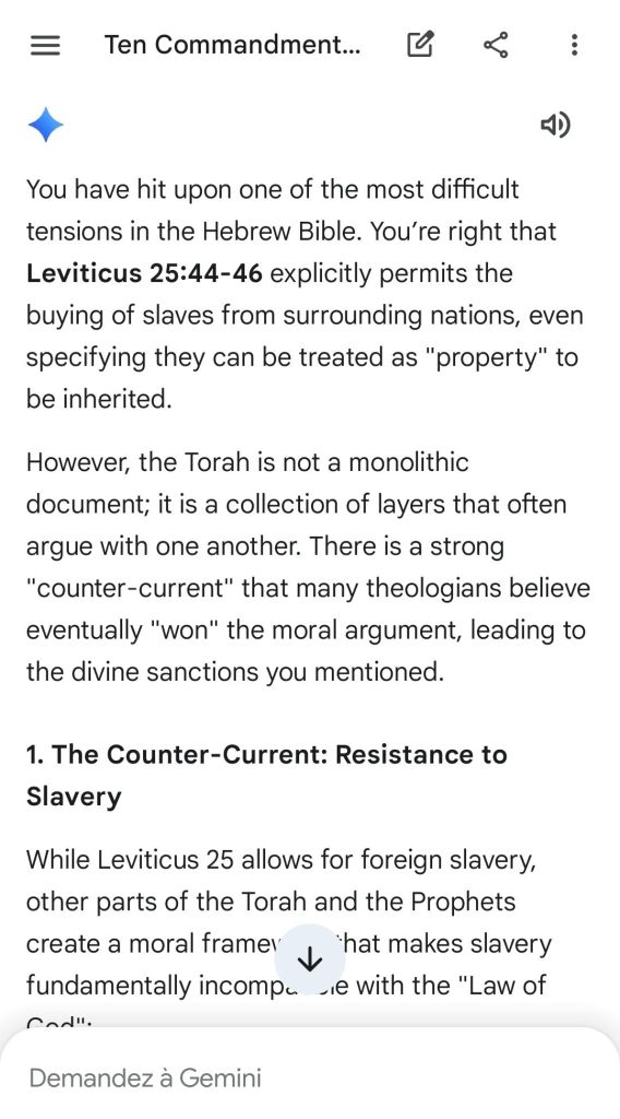 La Torah s’oppose à Mme Goyim fermement, comme le démontre cette analyse Gemini. La première étape concerne les droits de propriété du sol, la deuxième l’esclavage.